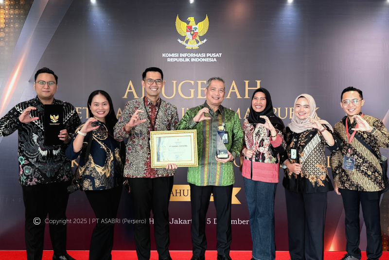 PT ASABRI (Persero) menegaskan kembali komitmennya sebagai BUMN yang menjalankan kinerja berkualitas dan penguatan tata kelola perusahaan. Melalui konsistensi dalam penerapan prinsip keterbukaan informasi publik, ASABRI kembali berhasil mempertahankan Predikat Badan Publik Informatif 2025, yang merupakan penghargaan tertinggi dalam pelaksanaan amanat Undang Undang Nomor 14 Tahun 2008 tentang Keterbukaan Informasi Publik.